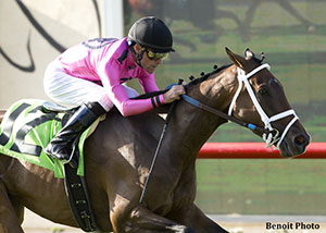 PETER MILLER (Monster Bea, winner) – “Mr. (owner Gary) Barber just called me and said 'I've got a horse I'm sending out from Kentucky to you'. We've only had him about a week. All the credit goes to (former trainer) Mark Casse. He did a super job and had him ready to run and we just babysat him for a week. Hopefully it does bode well for our stable and for Mr. Barber's horses here. I'll get together with Mr. Barber and we'll talk about the La Jolla and Del Mar Derby (additional races in the series).”